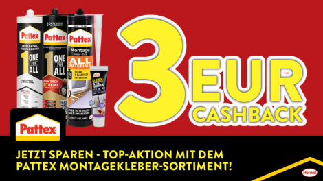 Bis zum 30.09.2025 kannst du an der PATTEX Cashback-Aktion teilnehmen und musst dafür gar nicht viel machen. Drei Euro Cashback winken, wenn du deinen Kassenbon hochlädst, die Einkaufsstätte und das Datum des Erwerbes angibst sowie deine persönlichen Daten inklusive Bankverbindung hinterlegst. Pattex möchte zu Marketingzwecken noch wissen, ob das Produkt erstmalig gekauft wurde und für welches Projekt du es nutzt – das ist alles.
