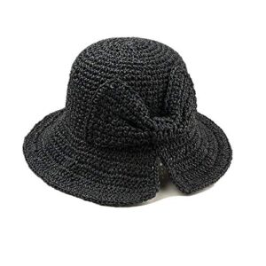 DOLDOA Hut Damen Sommer,Stroh Sommer Hüte Frauen Damenmode Faltbare Strand Sonnenhut Krempe (Schwarz)