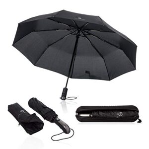 Sturmfest bedeutet bei Regenschirmen auch, dass sie nicht zu 100% davor bewahrt bleiben, dass der Schirm nicht doch einmal umklappen könnte. Der Unterschied jedoch ist, dass nur das Dach nach oben klappt und die Streben dabei nicht kaputtgehen. Der Regenschirm wird dir mit einer Reißverschlusstasche und einem Hardcase-Etui zum Verstauen geliefert, damit du ihn nach der Benutzung nicht nass in deiner Handtasche verstauen musst.