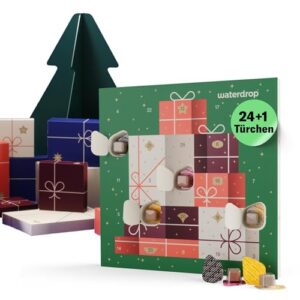 Eine ausreichende Menge zu trinken, ist essenziell für den Stoffwechsel, den Transport des Blutes und wichtiger Nährstoffe. Wenn es dir schwerfällt, pures Wasser in größeren Mengen zu trinken und du dadurch in keine Routine kommst, kann es hilfreich sein, deinem Wasser Geschmack hinzuzufügen. Dadurch trinkst du automatisch mehr. Um das System kennenzulernen und auszuprobieren, bietet sich der waterdrop Adventskalender an. Bei Amazon findest du ihn als Limited Edition mit 17% Rabatt für 19,89 Euro statt 23,90 Euro.
